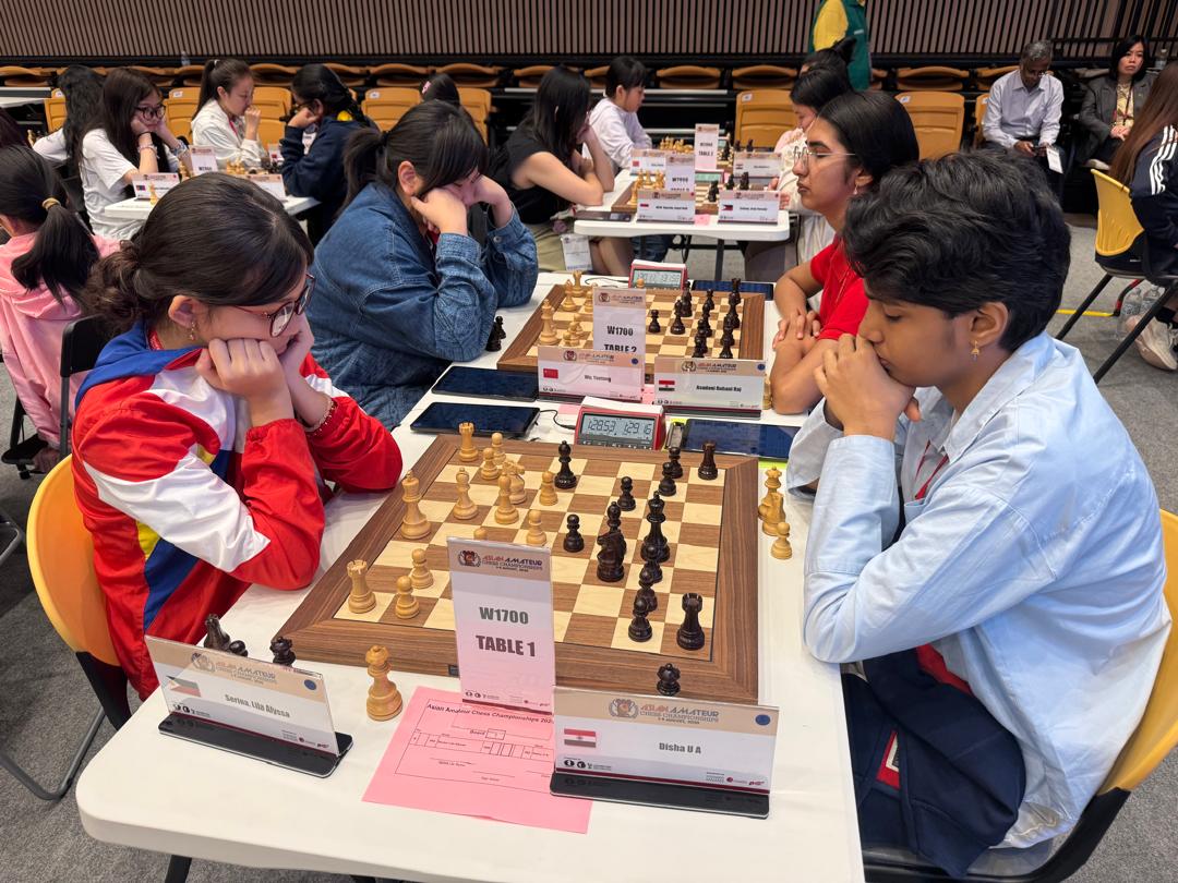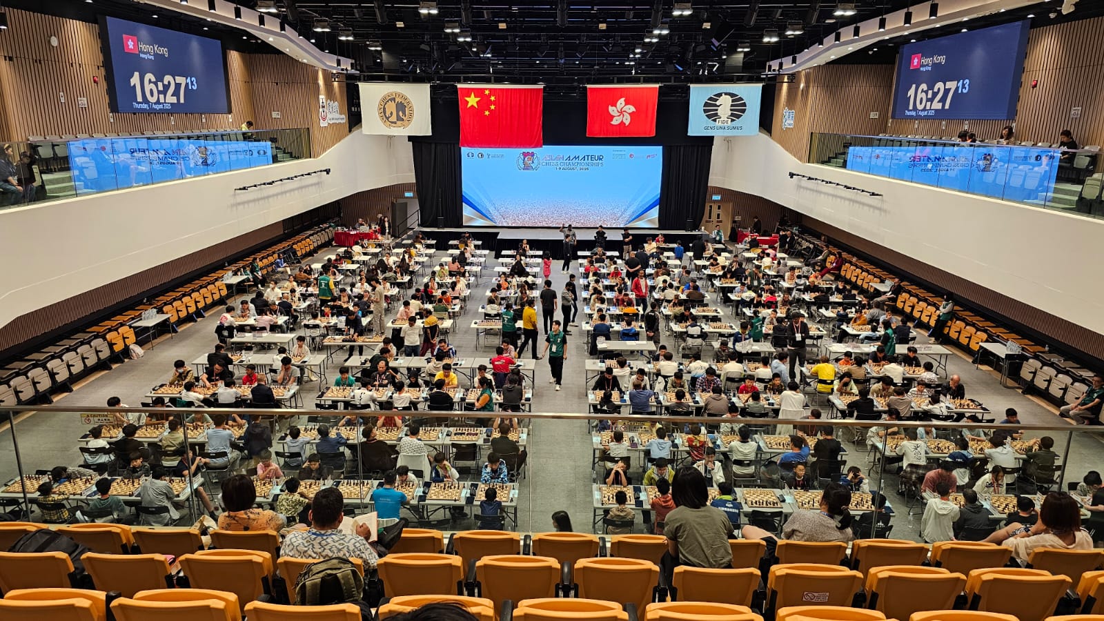 A panoramic view of the well organized Asian Amateur Chess Championship in Hong Kong, which broadcast games live from the newly FIDE-endorsed electronic scoresheets (photo below).