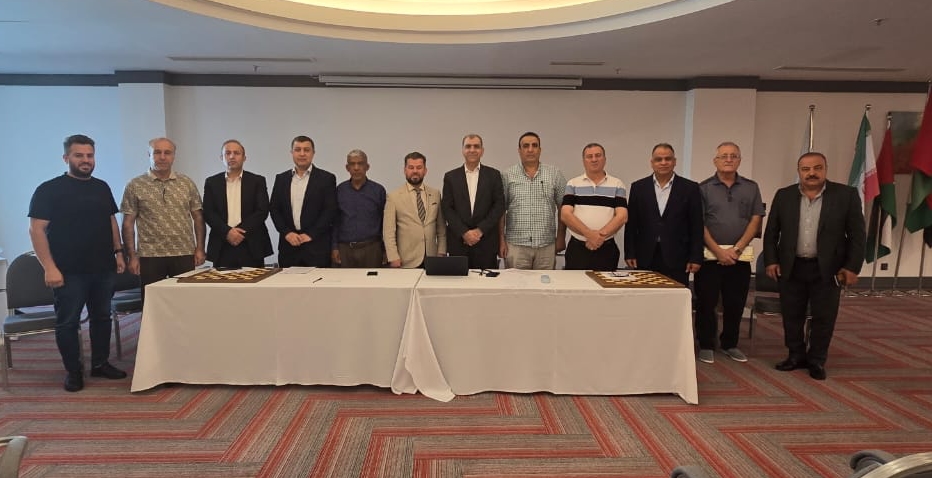 A technical meeting was conducted by Chief Arbiter IA Mehrdad Pahlevanzadeh of Iran (sixth from right). In center is Dr. Dlzar Hama Sali Qader, head of the local Khanzad Chess Club.
