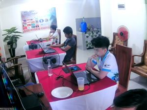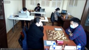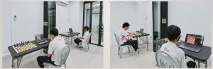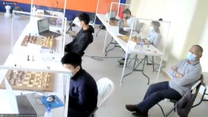 All venues in the ongoing Asian Continental Hybrid Chess Championshipo are monitored by panoramic cameras and players should stay within view when they stand to stretch their legs in this 5-1/2 hour round. Above is panoramic view of the Philippine Dasmarinas venue, same as they had in the preceding Zone 3.3 Zonal. Leaders each round were told to move nearer to the panoramic camers.