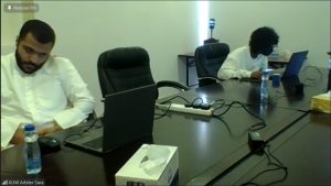 GM Temur Kuybokarov (left) playing under the watchful eye of Arbiter Andrew Hardegen. At right is Kuwait venue.