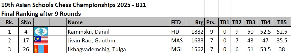 Asian Schools Chess Championships 2025 • Round 8 • lichess.org