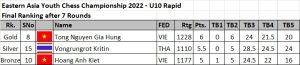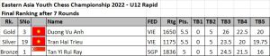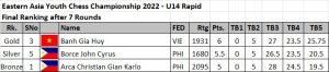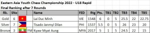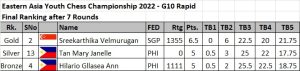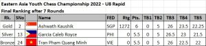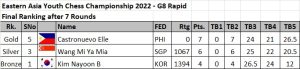 FIDE Master Alexei Kulashko of New Zealand settled for third with 6.0 points for the bronze medal.