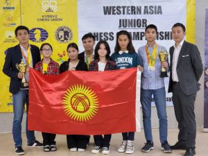 The Kyrgyzstan delegation. At right is Damir Talapker, Executive Director of the Kyrgyzstan Chess Federation and Chief Organizer of the Western Asia Juniors and Girls Chess Championships.