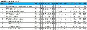 FM Abdurakhmonov Mukhammadali of Uzbekistan leads the Western Asia Juniors chess championship by one point after 7 rounds of the 9-round RR tournament organized by the Kyrgyzstan Chess Federation on behalf of the Asian Chess Federation, 5-15 September 2022 at the leisure resort of Korumdu, Issyk-Kul, Kyrgyzstan. Visit chess-results.com. Watch live broadcast on lichess.