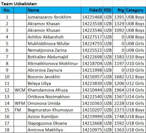 Above is Team Kazakhstan with 16 players accompanied by coaches and parents. Nine countries are competing in the event, namely Bangladesh, India, Kazakhstan, Kyrgyzstan, Nepal, Pakistan, Sri Lanka, Uzbekistan and host Maldives. Visit chess-results.com. Below is Team Kyrgyzstan.