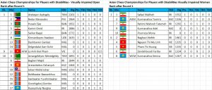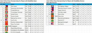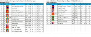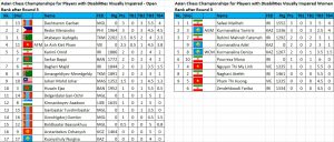 Two players each remain tied for the lead at the halfway mark of each of the 4 divisions of the Asian Disabled Chess Championships Open and Women on Tornelo. Visit chess-results.com for round by round results and standings and to download games. Watch live games on Tornelo.