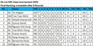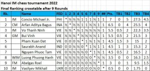 Here is the crosstable of the Hanoi IM tournament, held concurrently, won by Michael Concio (photo above) of the Philippines.