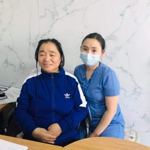 In above photo are Mijgee Khishigbayar of Mongolia and her physician who assisted her in connecting to the internet from her hospital room.