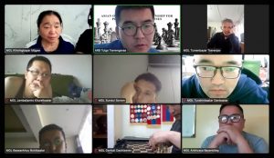 Among the Virtually Impaired, Dashtseren Ganbat of Mongolia and Menandro Redor of the Philippines share the lead with 3 points each in the Open division. Above is screenshot of the Mongolian Zoom room. In the women’s division, Safaei Maliheh of Iran and Kurmanalina Tomiris of Kazakhstan are tied at 3 points each for the lead. Below is screenshot of the Central Asian Republic Zoom room.