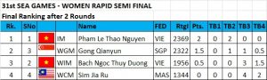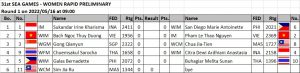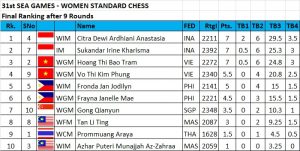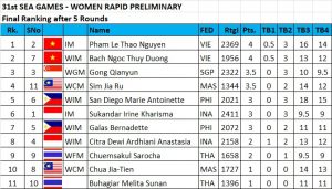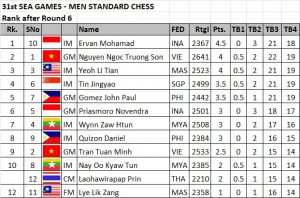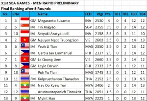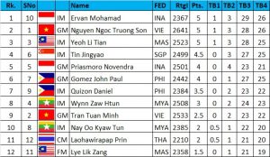 Rounding up to the top 17 who got 5.0 points each were Judge and FIDE Master Rosendo Bandal Jr. , Julius Dan Augustine Ablin, Madronio Fuentes, Marian Calimbo, Mhilter Edombingo, NM Almario Marlon Quiroz Bernardino Jr., John Cyrus Borce, Geronimo Romarate, Rocky Rocamora and NM Levi Martuna.