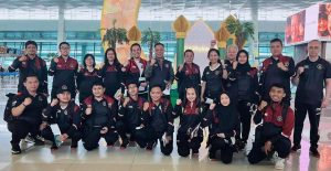 Indonesian delegation, front row from left: IM Sean Winshand Cuhendi, GM Novendra Priasmoro, IM Azarya Jodi Setyaki, IM Mohamad Ervan, IM Muhammad Lutfi Ali, WIM Chelsie Monica Ignesias Sihite, WIM Ummi Fisabilillah and staff from the Indonesian Olympic. Standsing from left: GM Susanto Megaranto, IM Yoseph Theolifus Taher, WIM Lisa Karlina Lumondong (women’s coach), WIM Dewi Ardhiani Anastasia Citra, team doctor from the Indonesian Olympic Committee, CDM Indonesian Contingent Ferry Kono, Henry Hendratno (Indonesia Chess Team Manager) , IM Irine Kharisma Sukandar, Kristianus Liem (head coach), IM Medina Warda Aulia, Rudijanto Majella (men’s coach) and GM Ruslan Shcherbakov (foreign coach of the Indonesian chess team)