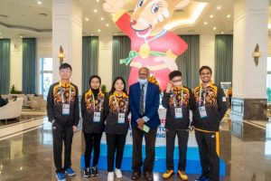 Malaysian delegation, from left: FM Lye Lik Zang, WIM Puteri Munajjah Az Zahraa Azhar, WFM Tan Li Ting, Abd Hamid Majid – ITO Chairman Appeal Committee, IM Yeoh Li Tian and Sumant Subramaniam – HOD