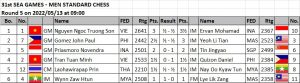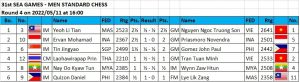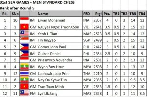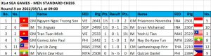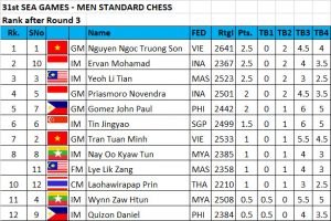 GM Nguyen Ngoc Truong Son, IM Ervan Mohamad of Indonesia and IM Yeoh Li Tian of Malaysia beat their respective round 3 opponents to share the lead with 2.5 points each in the Southeast Asian Games men’s standard individual championship in Ha Long Bay, Vietnam. Visit chess-results.com for round by round results and standings and to download games.