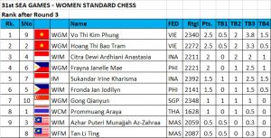 In the women’s division, WG,s Vo Thi Kim Phung and Hoang Thi Bao Tram of Vietnam beat their respective opponents to share the lead with 2.5 points each after 3 rounds.