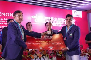 Board Award: First Board-GM Niaz Murshed (Saif Sporting Club) 5.5 points, 2341 Rating Performance in 7 Games, 2nd Board-GM Idani Pouya (Saif Sporting Club) 10 points in 11 Games, 2777 Rating Performance, 3rd Board-GM Abhimanyu Puranik (Bangladesh Biman) 9.5 points, 2618 rating performance in 11 games, 4th board – GM Mendonca Leon Luke (Manha’s Castle) 9.5, 2622 rating performance in 11 games, Additional 1st board – GM Ziaur Rahman (Bangladesh Police) ) 4.5 points, 2475 rating performance in 7 games and additional 2nd board-CM Saiful Islam Chowdhury (Titas Club) 4.5 points, 2211 rating performance in 8 games game.