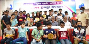 Chess competitions are organised for children on the occasion of National Children’s Day. Md. Sajidul Haque earned maximum 7 points out of 7 games and became the undefeated champion in Open division. Tashriq Saihan Shan became Runner-up and Safayat Kibria finished third with five and a half points each in the Open division. Syed Ridwan, Afnan Zarif Haque, Ryan Rashid Mugdho, Siam Chowdhury, Md. Jakibul Islam Ayon and Ridwan Rabbani secured the ninth position from fourth to ninth with five points respectively. In the girl’s division, Israt Jahan Diba became the undefeated champion with full 7 points in 7 games. Neelava Choudhury was runner-up with six points and Wadifa Ahmed was third with five points. Jarin Tasnim was fourth and Nazia Jafrin Mohona was fifth with four and a half points. Warsia Khusbu, Annasha Banik, Marzuka Mukarrama, Alizah Nubaisha Islam and Fatiha Eyenoon Diya became in sixth and tenth place respectively with four points. The winners of the open and girls group in the 7 round Swiss-League competition were given cash prizes of total fifty thousand Taka, trophies and medals.