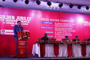 Dr. Shoaib Riaz Alam Additional DIG of Bangladesh Police and Joint-Secretary of Bangladesh Chess Federation (photo above),  Masudur Rahman Mallick, Joint-Secretary of Bangladesh Chess Federation and Mahir Ali Khan Ratul, Treasurer of Bangladesh Chess Federation were present as special guests in the ceremony. Premier Division Champion Team Bangladesh Police was awarded one lac twenty five thousand, Trophy and Medal, Runners-up Saif Sporting Club received seventy five thousand taka, Trophy and Medal and Third Bangladesh Biman received fifty thousand taka, Trophy and Medal, First Division Chess League champion Sultana Kamal Smriti Patahgar received fifty thousand taka, trophy and medal, Runners-up Palli Sanchay Bank received thirty thousand taka, trophy and medal and the third Dhaka Chess Club received twenty, trophy and medal. The best player on each board in the Premier Division was given a cash prize of ten thousand Taka each and a medal and The best player on each board in the 1st Division was given a cash prize of five thousand Taka each and a medal.