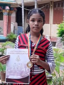 After a tough war P Thishanuga (above left) of Vembady Girls High School, Jaffna was able to win the championship of the Northern Women’s event with the 6 points she won and the advantage of tie break. The only game she lost was played against Narthavi S. Meanwhile, G H S Sanulya (above center) of Polonnarywa Royal Primary College had to satisfy herself with the silver medal due to lower tie break points and the only game she lost was played with Thishanuga P, the winner of the event. S Narthavi (above right) of Vembady Girls High School, Jaffna was able to win the bronze medal with the 5 points out of 7 rounds.