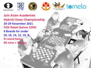 The Bangladesh Chess Federation under the auspices of the Asian Chess Federation (ACF) and the International Chess Federation (FIDE) and in cooperation with the FIDE Trainers Commission and Elegant Chess Academy, have the honor to invite all Asian National Chess Federations to participate in the 2021 Asian Academies Hybrid Chess Championships scheduled 20-29 November 2021 on Tornelo.
