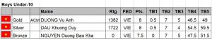 Vietnam won team gold in the under-10 boys followed by Mongolia and Singapore.