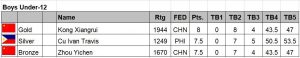 China won team gold in the Under-12 boys followed by Vietnam and Phiilppines.