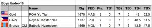 Poh Yu Tian (MAS)                                                            Chester Neil Reyes (PHI)                         Batbold Nyamsuren (MGL)