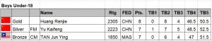 China won team gold in the under-18 boys followed by Malaysia and Philippines.