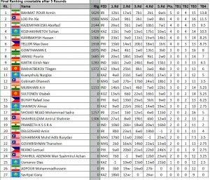 Loo, Abolfazi Kazemiyan Esko of Iran and Sultan Kozhakhmetov of Kazakhstan followed with 4 points each but after tie break the Malaysian got silver while Kazemihyan won the bronze.