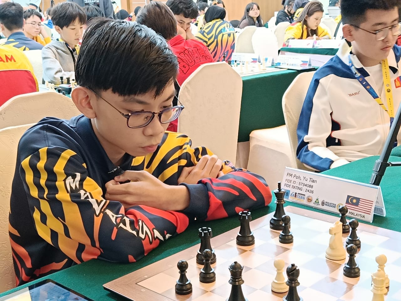 Unable to move her hands, she calmly instructed her assistant, who then made the moves on her board and pressed her clock. While her pieces, guided by her strategic brilliance, created chaos on board for her opponents, she sat serenely in her wheelchair, cool as a cucumber. Her opponents struggled to find responses to equalize the game, clearly challenged by her formidable play.