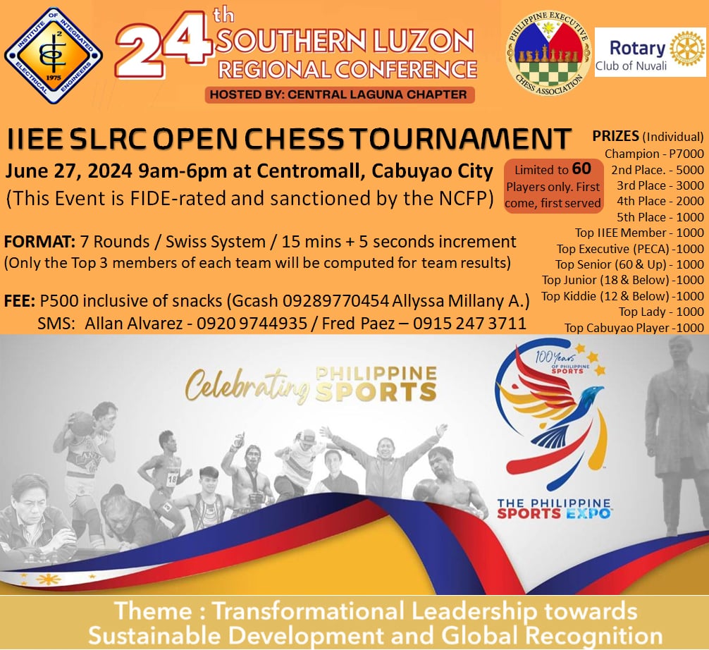 Earlier, Mayor Eric Africa and Asia’s First Grandmaster Eugene Torre made the ceremonial moves kicking off the one-day tournament also graced by Philippine Society of Mechanical Engineers – PSME past president Engr. Roger Reyes, International Master Roderick Nava of Kamatyas Chess Club, Chief Arbiter Ryan Dimayuga, Deputy Arbiter Allan Oseña, 13 time Philippine Open Champion Grandmaster Rogelio “Joey” Antonio Jr., former Vice-Mayor Kuya Boy Manguerra and tournament director Engr. Danilo “Danny” Reyes.- Marlon Bernardino-