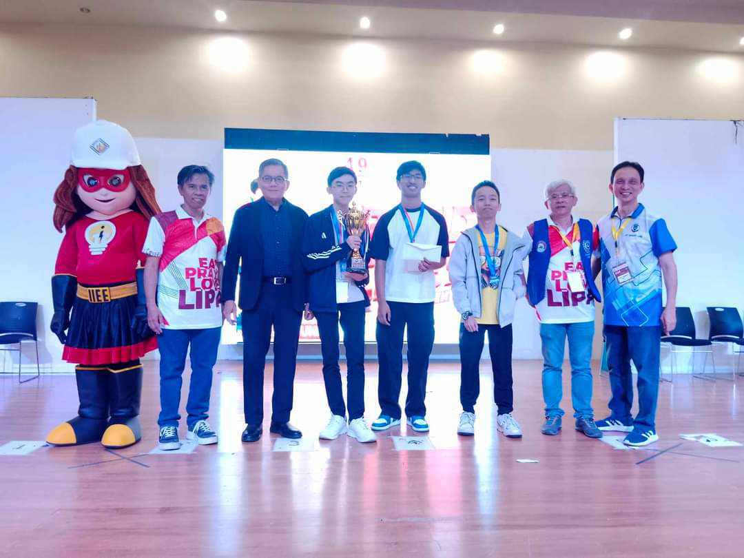 Team Seirin topped the open division of the JCI Senate Lipa Open Rapid chess team tournament at the Lipa City Convention Center on Monday, June 17, 2024 in Lipa City, Philippines. In photo are, from left Mascot Ampen, Philippine Society of Mechanical Engineers – PSME past president Engr. Roger Reyes, Asia’s First Grandmaster Eugene Torre, country’s newest FIDE Master Ivan Travis Cu, Tyrhone James Tabernilla, Zeus Alexis Paglinawan, tournament director Engr. Danilo “Danny” Reyes and Mr. Gary Malabanan.