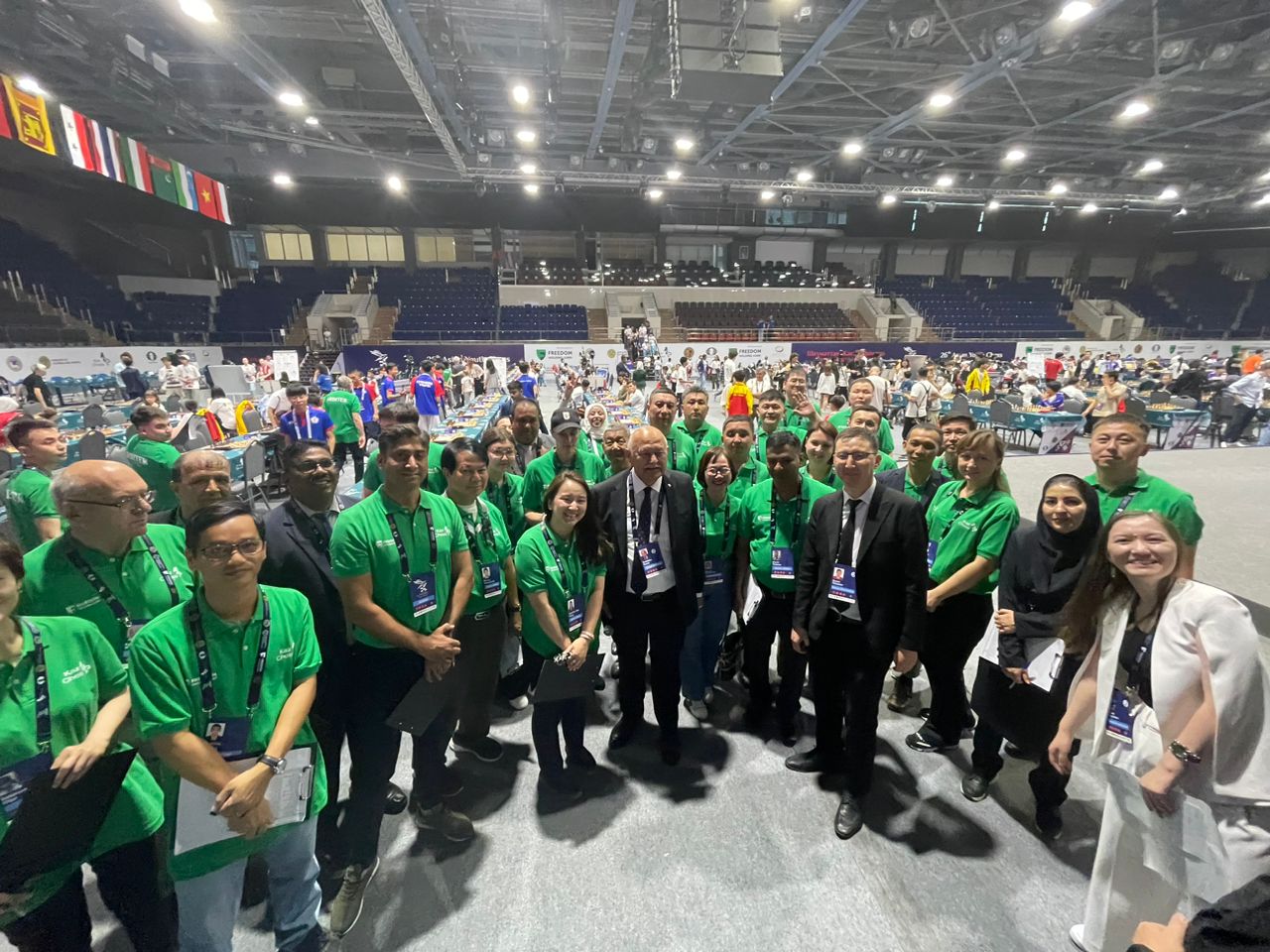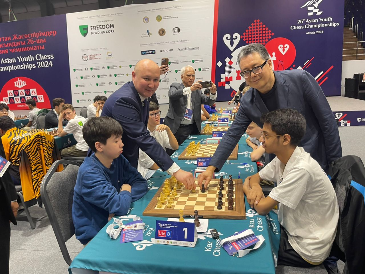 The National Age Group Chess Championships Eliminations were held 31 May to 6 June 2024 at the Oriental Convention Center in Dumaguete City, Philippines. In photo are, from left to right, FST/GM Jayson O. Gonzales – NCFP CEO, Ernesto Torres – Little Kingsmen Chess Club President, Alfredo Dumalag – Negros Club 64 President, NA Antonio Martin Olendo – NAGCC Organizer, GM Eugene Torre – First Asia’s Grand Master, Hon. Prospero A. Pichay Jr. – NCFP Chairman/President.