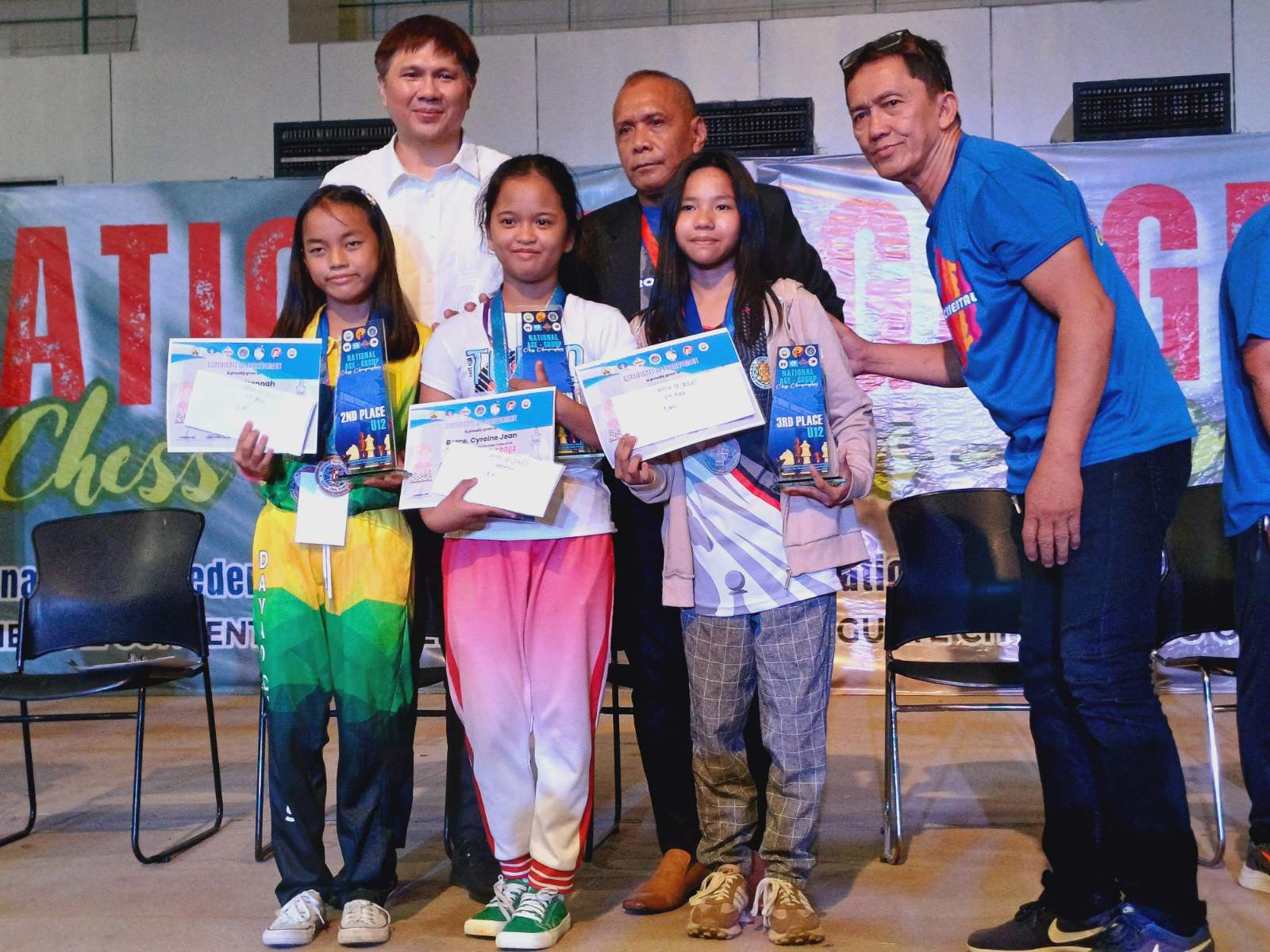 Under-14 girls winners, from left to right, Daniella Bianca Cruz – 2nd place, Mendoza Jemaicah Yap- Champion, Sotaridona Iana Angela – 3rd place.