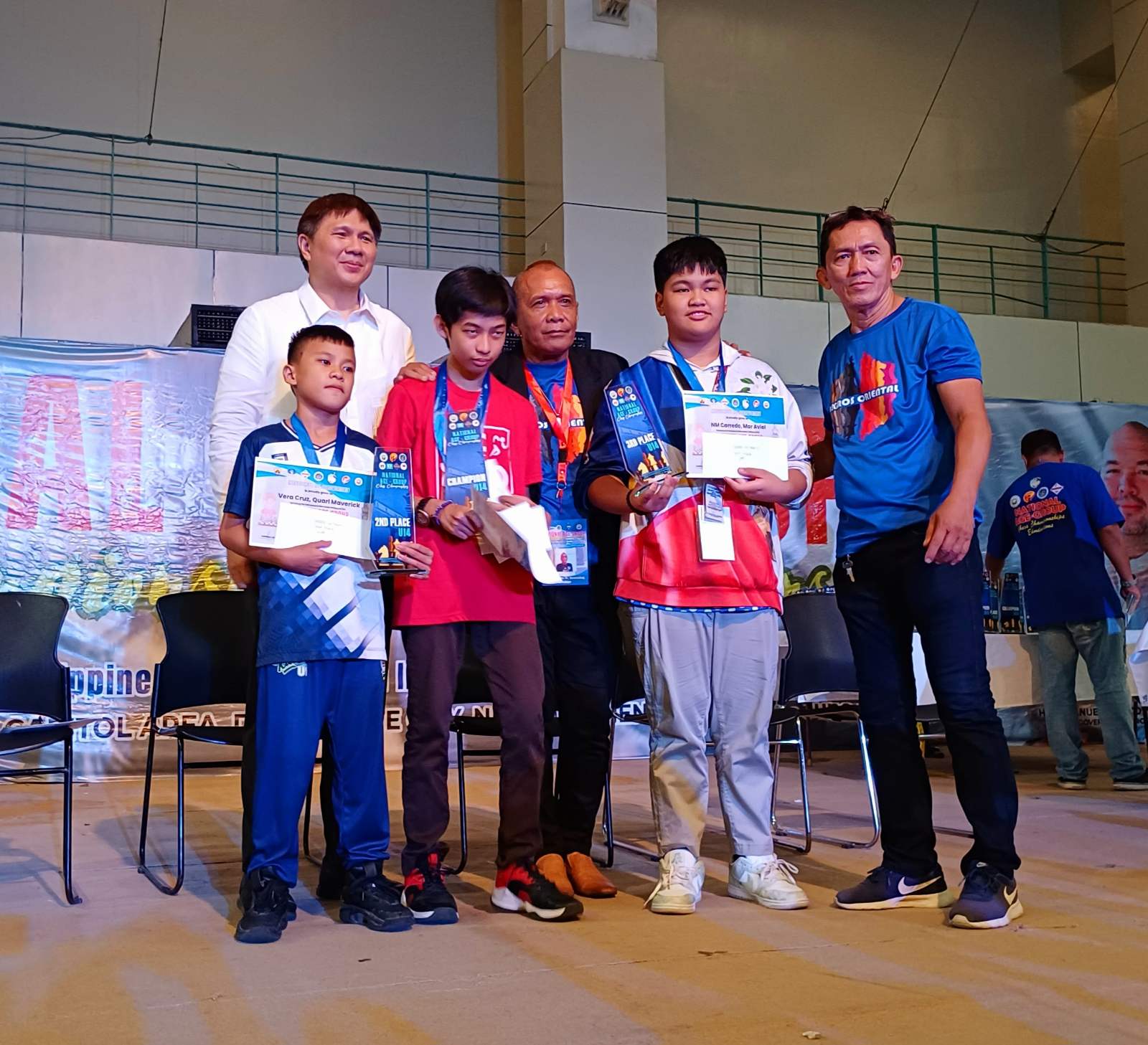 Under-14 boys standard event winners, from left to right, Vera Cruz Quarl Maverick- 2nd place, AFM Piel Jaymiel- Champion, NM Carredo Mar Aviel- 3rd place.