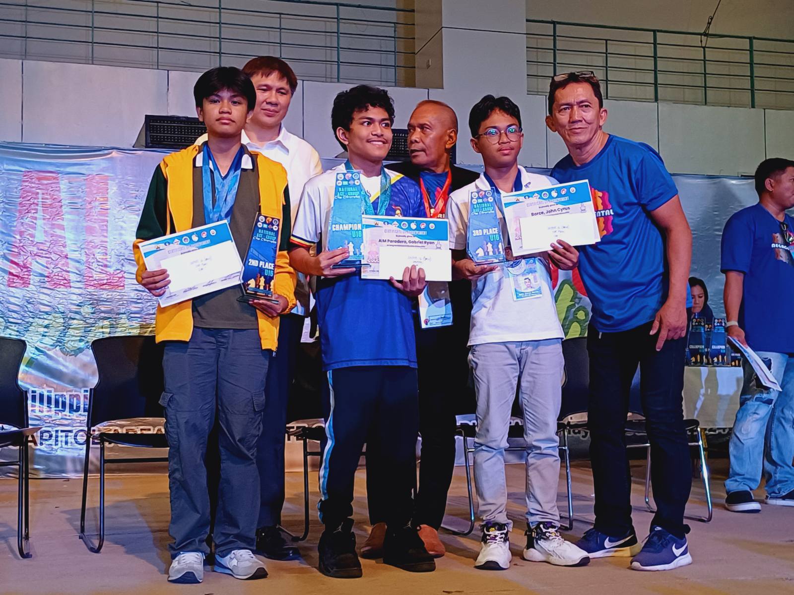 Under-16 boys standard event, from left to right, NM Cyrus James Damiray- 2nd place, AIM Gabriel Ryan Paradero- Champion, John Cyrus Borje – 3rd place.