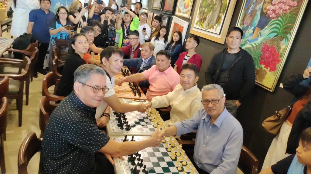 Asia’s First GM Eugene Torre vs Executive Producer of Exhibit Today Ric Angeles, GM Rogelio “Joey” Antonio Jr.vs Carson, California based Danilo Jorda, WGM Janelle Mae Frayna vs lawyer Rodolfo Enrique “Rudy” Rivera,  Engr. Roger Reyes vs NCFP Director Martin Gaticales and IIEE National Past President Engr. Allan Anthony Alvarez vs IM Angelo Young made the ceremonial moves kicking off the one-day tournament also graced by Engr. Ervin Fernandez, Engr. Menandro Lim, Engr. Joseph Darren Solicar and Engr. Adrian Rey. (Contributed photo by CM Genghis Imperial)