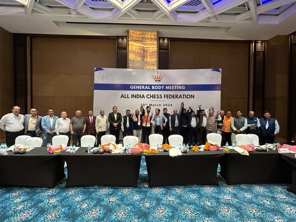 The General Body also elected six vice presidents Shri Anil Kumar Raizada of Uttar Pradesh, Grandmaster Dibyendu Barua of West Bengal, Shri Raghvendra Singhania of Chhattisgarh, Shri D P Anantha of Karnataka, Shri Mahaveer Ranka of Rajasthan, Shri Repo Ronya of Arunachal Pradesh and six joint secretaries namely Shri Kandarpa Kalita of Assam, Shri Prasanta Kundu of Tripura, Shri Soibam Mangijao Singh of Manipur, Shri H Lalthlamuana of Mizoram, Shri Sanjeev Thakur of Himachal Pradesh and Shri Manish Kumar of Jharkhand.