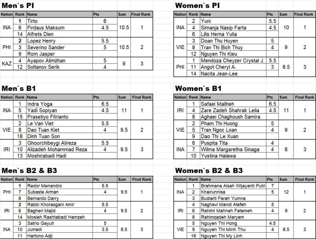 Badmatsyrenov, Pascua, Garma, Visca and Malupa won their respective matches in the blitz portion.