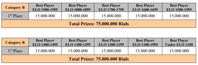 In the attractive rating category prizes Prithvi Sharma (Haryana) who also scored 8 points in the tournament, grabbed 1st position in 1300-1599 rating category and won 1,01,000/- and a trophy while Sathessh Kumar G (Tamilnadu) scored 6.5 points grabbed 1st position in 1000-1299 rating category and won 100,000/- and a trophy.