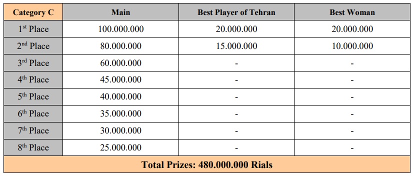 The total cash prize pool amounts to $3,000, with the champion receiving the largest portion, which is US$500.