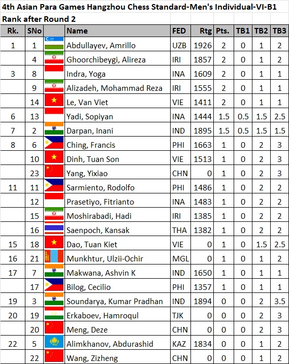The 4th Asian Para Games Chess Competition is being held 22-28 October 2022 in Hangzhou, China with 69 disabled chess players from15 countries, namely Bangladesh, China, Indonesia, India, Iran, Kazakhstan, Kyrgyzstan, Korea, Mongolia, Philippines, Thailand, Tajikistan, Turkmenistan, Uzbekistan and Vietnam.