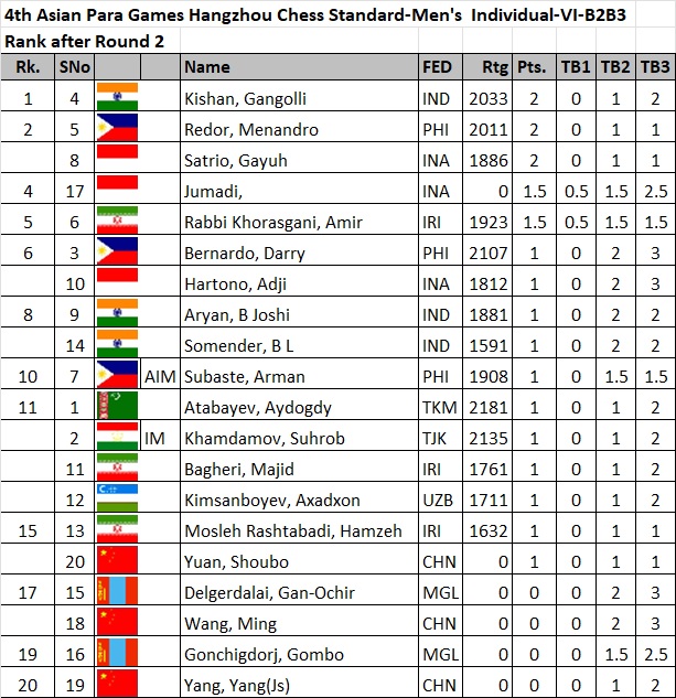 Disabled categories are MenP1, MenB1, MenB2&B3, Women P1, Women B1, WomenB2&B3. See schedule in Chess Medal Event in Hangzhou 2022 Asian Para Games – Asian Chess