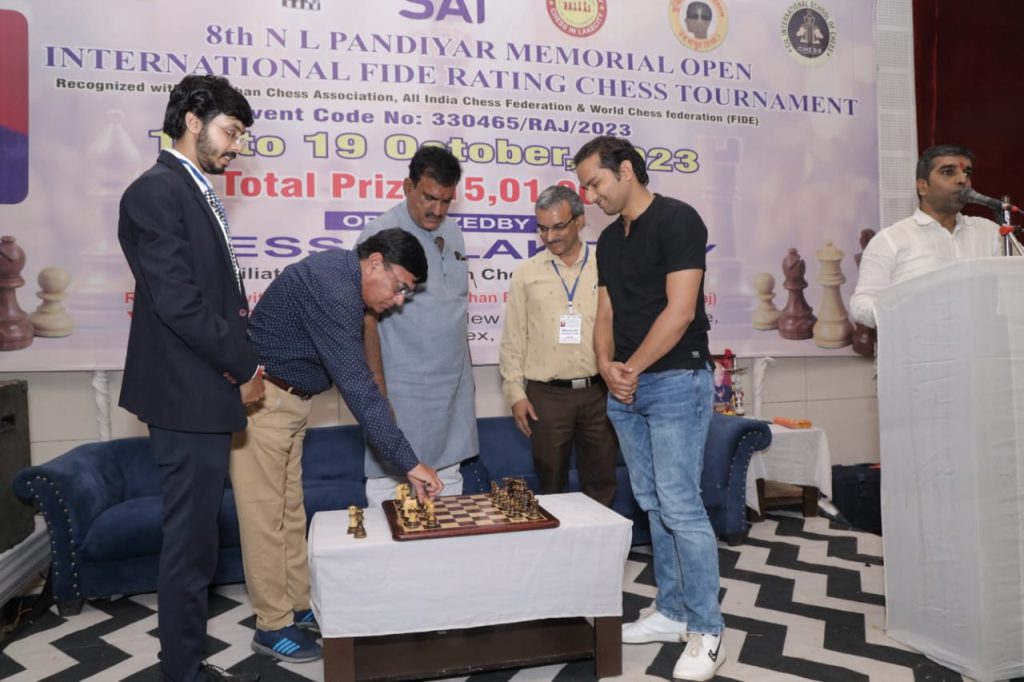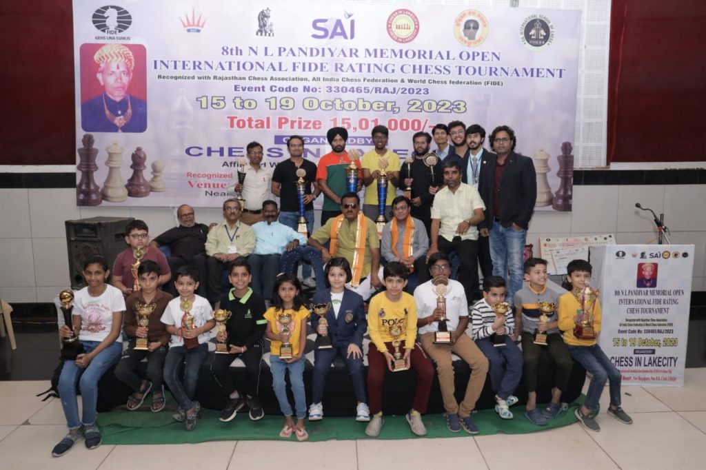 The 8th NL Pandiyar Memorial International Open Fide Rating Chess Tournament 2023 was organized by Chess in Lakecity from 15th to 19th Oct 2023 at Orbit Resort, New Bhopalpura, R K circle, Udaipur (Rajasthan), India. This tournament was organized under the aegis of FIDE, AICF and Rajasthan Chess Association.
