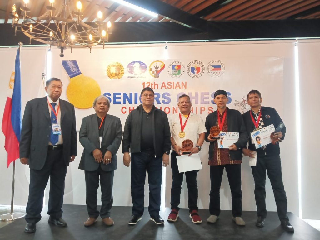 The Tagaytay tournament had 18 players in the 50-and-over division and 17 players in the 65-and-over division in the weeklong event hosted by Philippine Olympic Committee (POC) president and Tagaytay City Mayor Abraham “Bambol” Tolentino, Cavite Vice Governor Athena Bryana Tolentino in close cooperation with the International Chess Federation, Asian Chess Federation and National Chess Federation of the Philippines chairman and president Prospero “Butch” Pichay Jr.