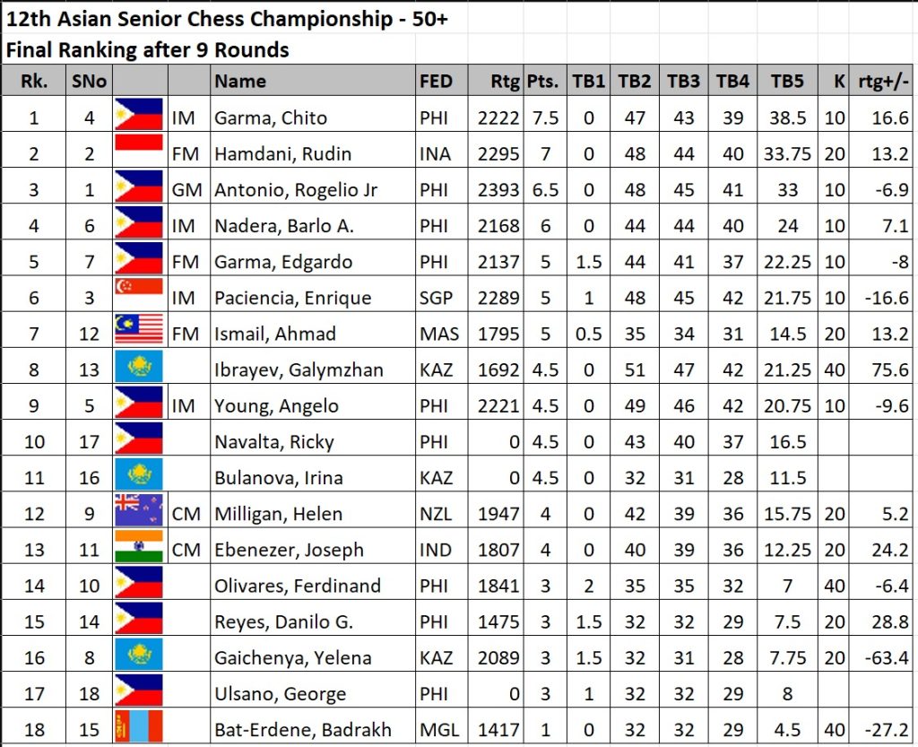 More importantly, Bagamasbad and Garma, both earned their second Grandmaster norms plus a free hotel accommodation in the 2024 World Seniors Chess Championship.