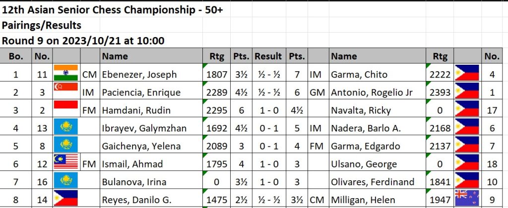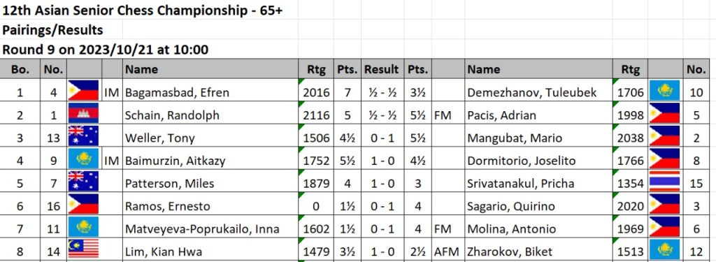 “Draw is okay. I don’t want to take a risk because not only focus on the title plus the 2nd of three GM norms,” said Bagamasbad, who is using the tournament as part of his preparations for the 2023 World Seniors Chess championships in Terrasini, Italy from October 24 to November 6.