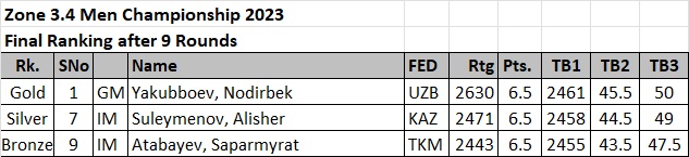 So, before the final 9th round, the leaders’ standings are as follows: 1. Sh. Vokhidov (Uzbekistan) – 6.5; 2-5. B. Daneshvar (Iran), A. Suleimenov, A. Puranik (India), Tin Jing Chao (Singapore) – 6; places 6 to 13 are shared by eight participants, including Zhumabayev, Nogerbek, and Utegaliyev – all of them have 5.5 points and must play for a victory to maintain their chances of advancing to the next stage.