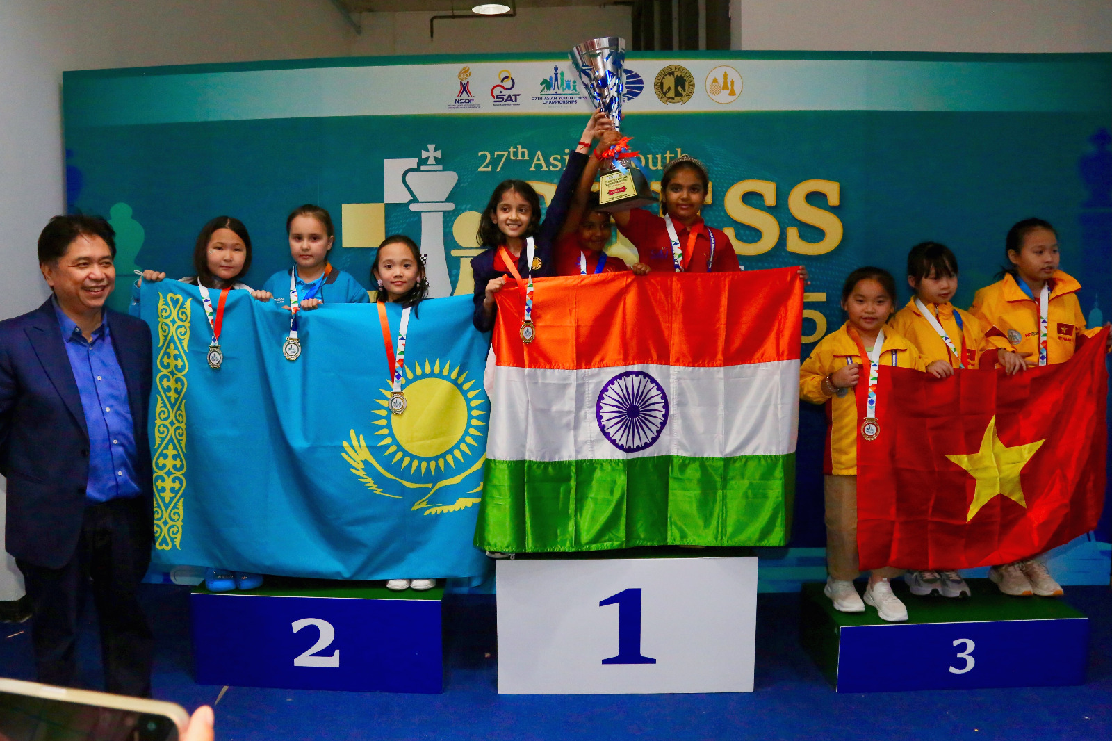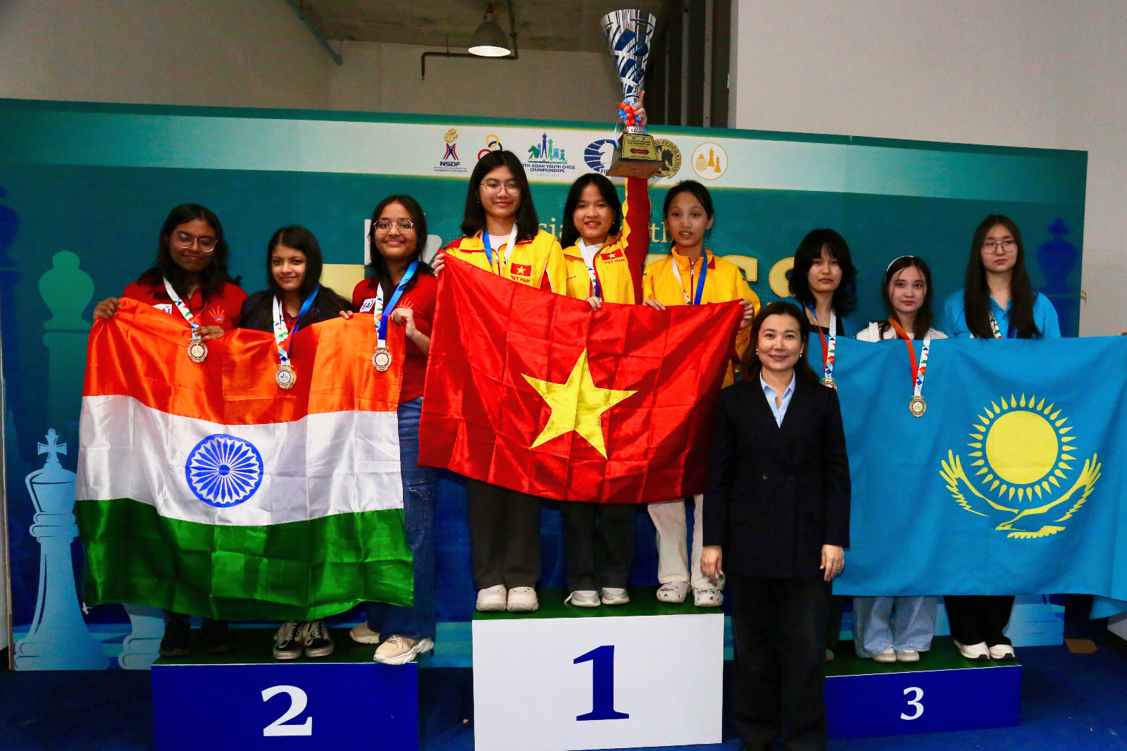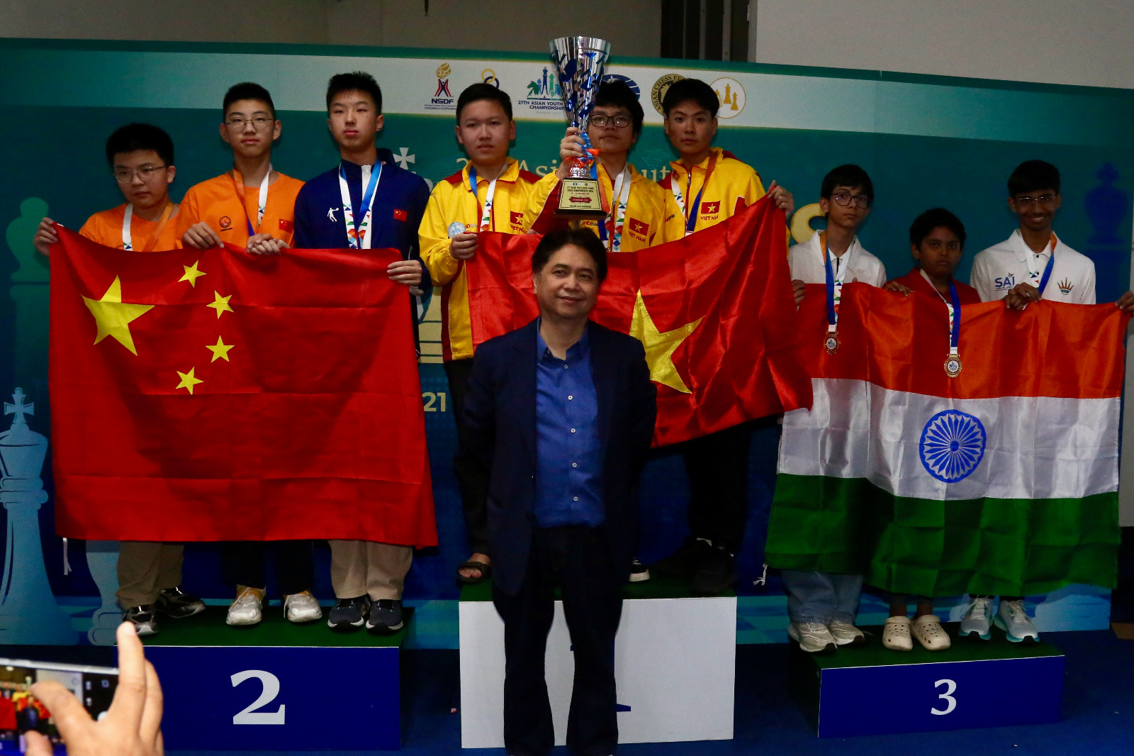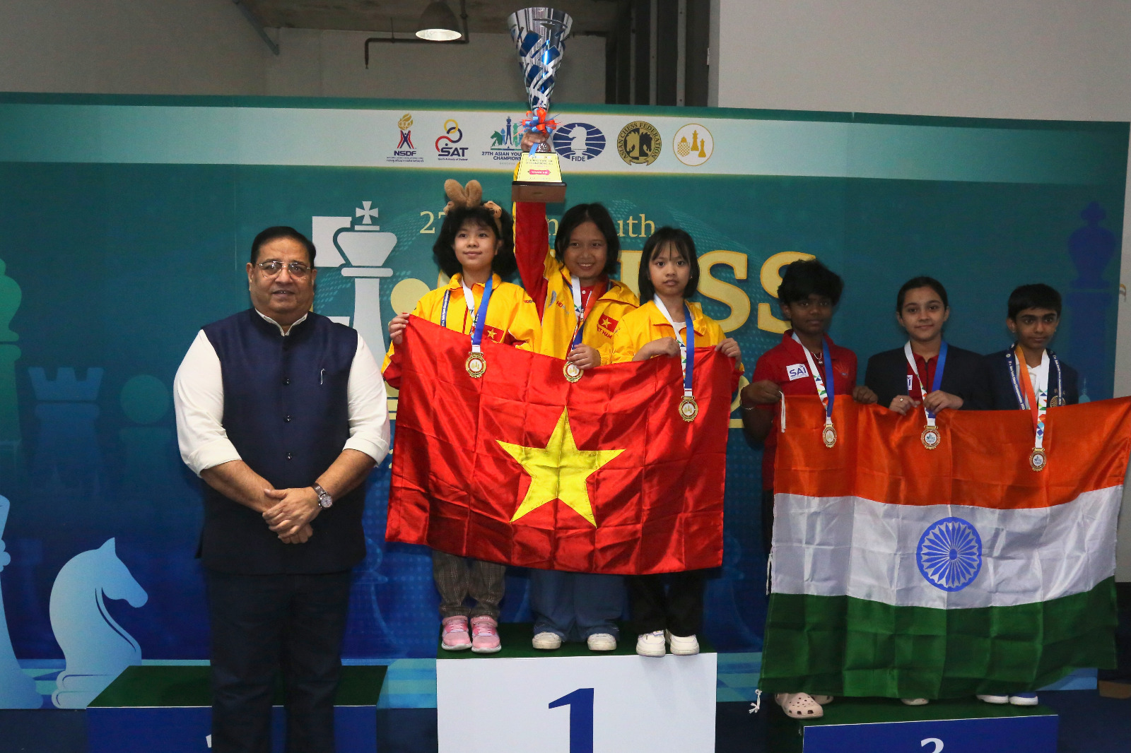 To encourage team work among players from each country, team medals will be awarded per category based on the total score of the top three players of a federation. Federations with fewer than three players will not be eligible for a team award. In case of any tie, the tie-break scores of each player shall be considered.